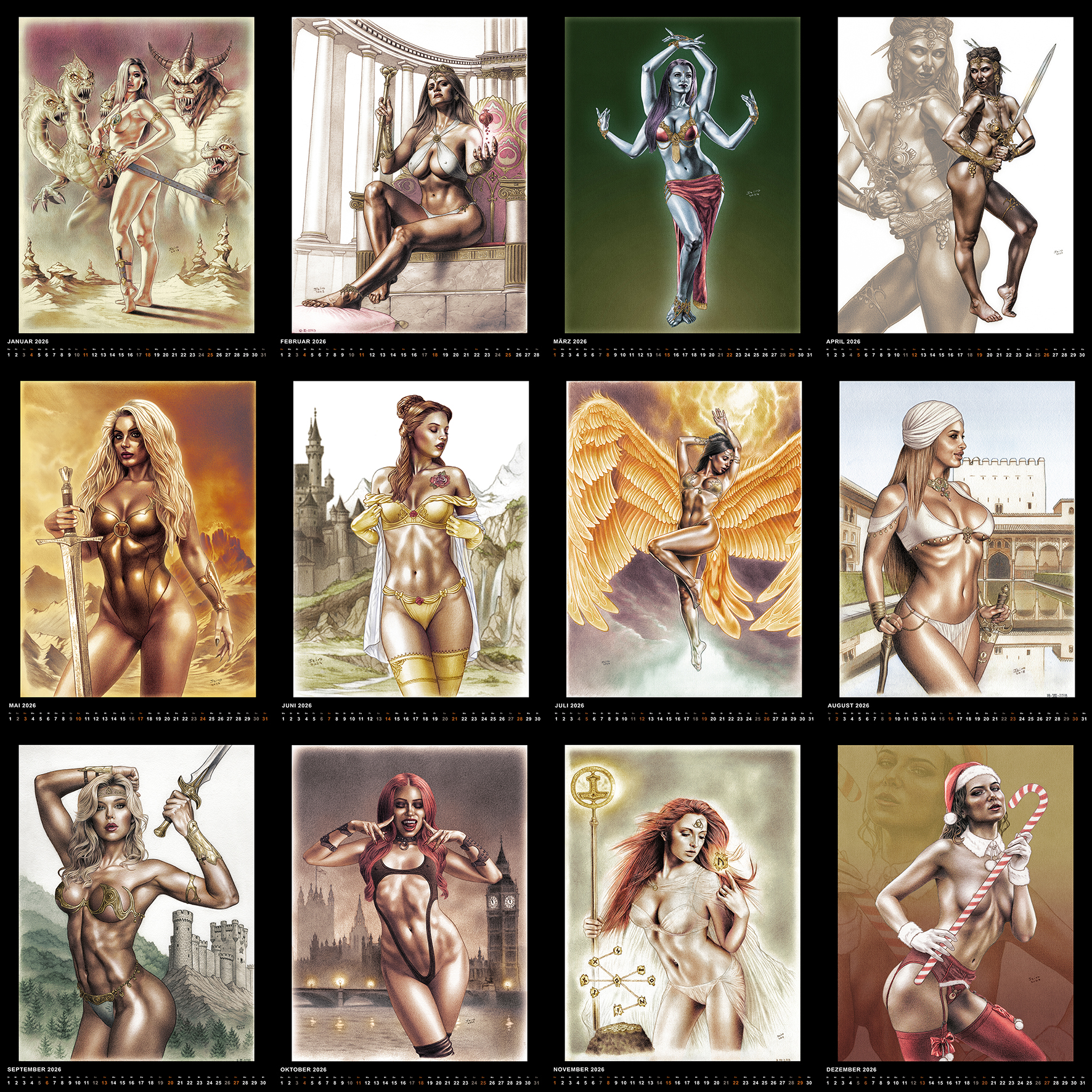 Zum ersten Mal bei THENEXTART gibt es einen großformatigen Kalender mit 12 Pin-Ups von Jairo Valverde für 2026.