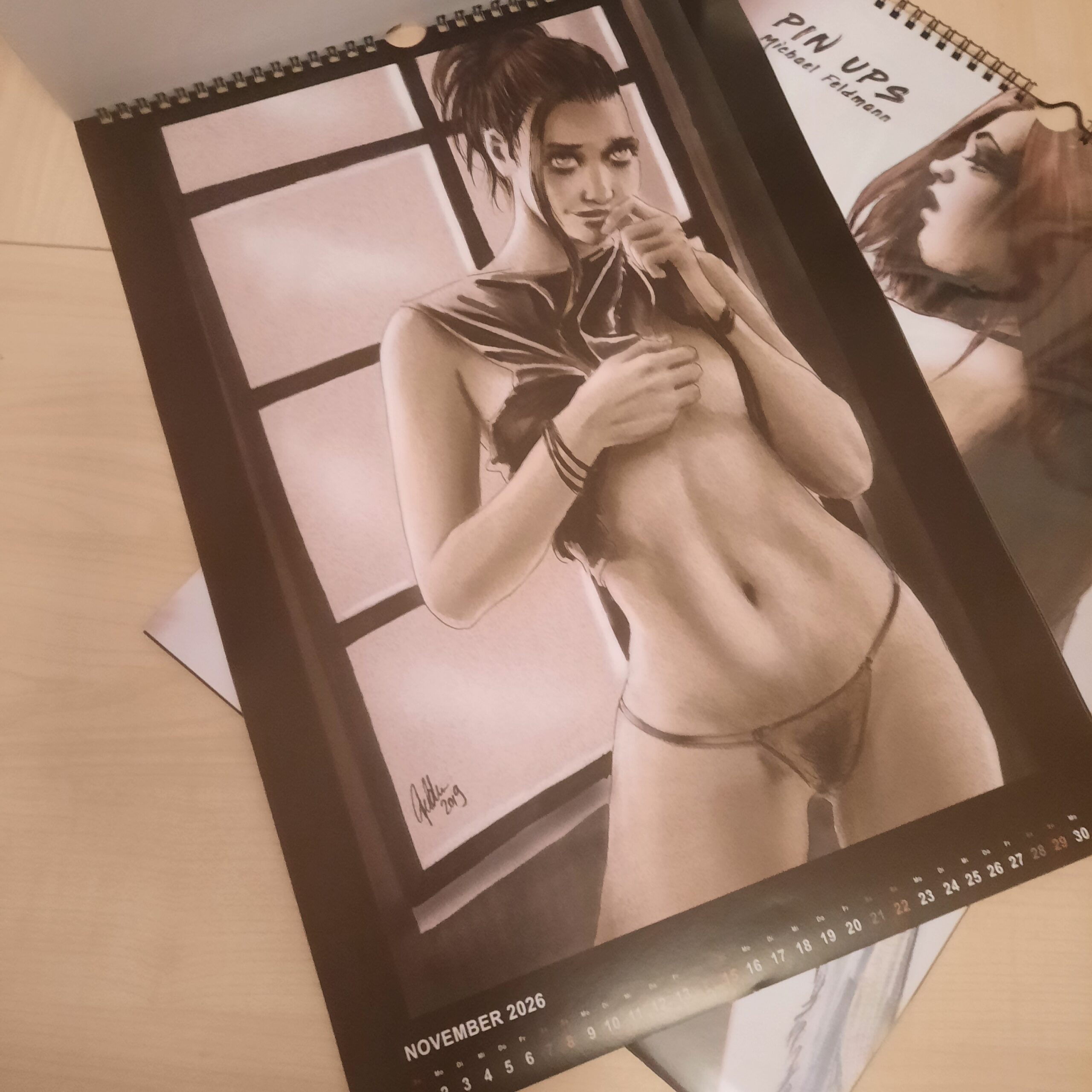 Zum ersten Mal bei THENEXTART gibt es einen großformatigen Kalender mit 12 Pin-Ups von Michael Feldmann für 2026.